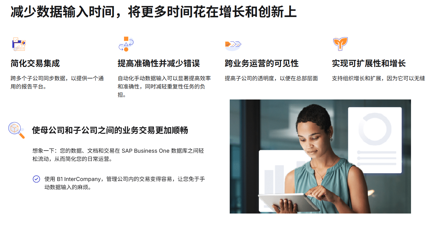 基础数据、交易单据在SAPBusiness One数据库之间轻松流动,简化了日常操作。有了B1 InterCompany,在您的公司内管理交易变得容易,使您免于手工数据录入的麻烦。