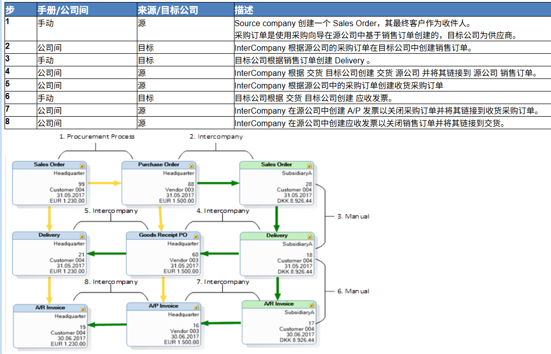 Intercompany的主要任务是跨多个公司自动执行不同的业务流。 InterCompany 将接管一些手动流程以简化流程。在使用单据同步之前,要先设置主数据同步,以确保所有主数据同步。