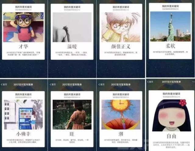 与网易云音乐的玩法相仿,支付宝在第七年推出的年度账单不再只是纯粹的账簿,还分析出诸如「才华」、「远方」、「颜值即正义」、「懂得」等酷评。