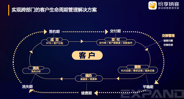 第三, 连接销售、交付、客户成功和研发,实现跨部门的客户生命周期管理解决方案(下图)。通过建立客户360°视图,对所有角色共享交付和服务数据,加强对客户的服务能力,从而提升客户体验。这个环节最大的挑战是如何建立客户统一视图,如何建立跨角色跨部门的协作流程。